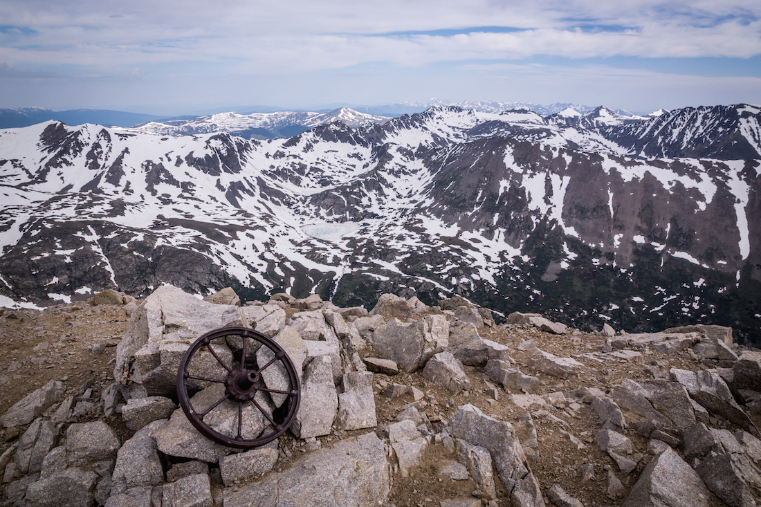 I heard ramblings that the summit of Mt. Bross was closed, but I had seen nothing indicating such on 14ers.com the night prior. I know previously, they had red text indicating that the Colorado 14ers Initiative was working with the land owners to try to make a deal or something, and to not climb it while this was happening, but I saw no such red text the night prior. I made my way along an initially pretty snow covered part of the ridge, following in the footsteps of the nice guys who had described Mt. Lincoln as “windy.” I was still being hammered by winds strong enough to knock me off my balance several times and make breathing a bit more difficult. Past the saddle on the Mt. Bross side, the snow had cleared, and it only took me until 10:26 AM to summit.