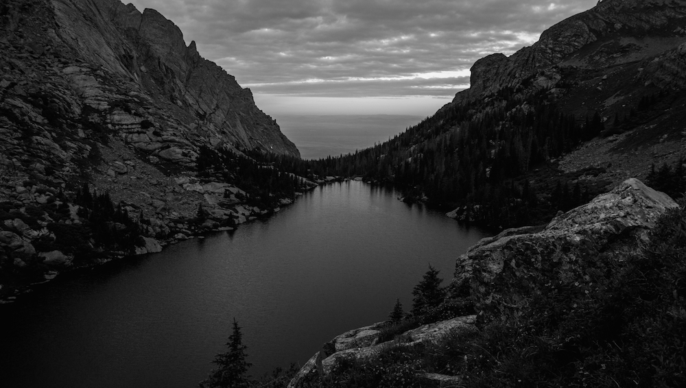 I walked in darkness, with intermittent clouds frequently covering up the nearly blue moon. It was on the switchbacks about two miles in after paralleling Willow Creek Park, where the exhaustion began to set in. I began to stop frequently for breather breaks taking my sweet time to get to the lake. After crossing the headwall I began to hallucinate. I kept hearing noises behind me, turning around, and seeing animals that weren’t there and don’t exist. Like shiny blue ferret-rodent looking creatures. As off-putting as this was, I continued on. The temperature was dropping and it was roughly 2:00 AM. At the stream crossing at 11,250 feet, I managed to slip and get my feet soaked. My body temperature began to fall. Crossing through some high willows got my legs wet, and pretty soon my exhaustion had me inebriated to the point of really weird mood swings. It dawned on me that I had greatly overestimated my abilities of climbing while exhausted, and I decided that I’d try to make a makeshift tent out of my poncho to rest for a few hours at the lake. The final half-mile was grueling.