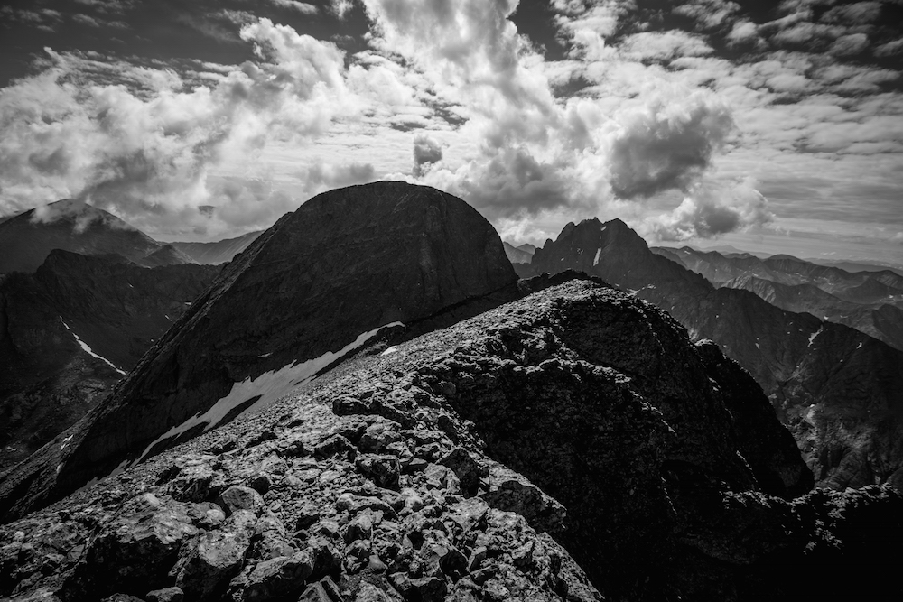 At the notch, I noticed some rotor looking clouds forming to the south (opposite of the picture above). I continued. The climb from the notch to the summit of Challenger would normally be very easy, but it seemed like hours to me. In minor disbelief I found myself at the summit at 9:25 AM. Kit Carson loomed over and I could see the two climbers from before almost at the Kit Carson avenue, but the weather was deteriorating, and NOAA had reported a high chance of thunderstorms past 10 AM.