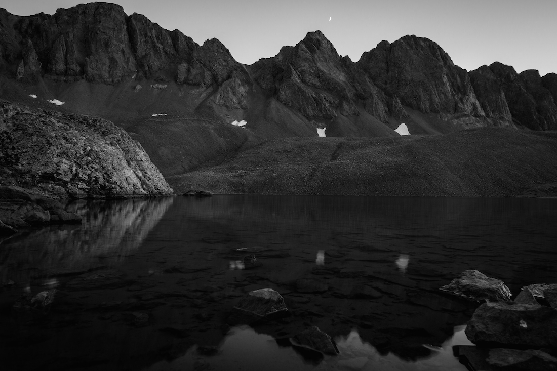 The final part of our hike was in frigid moonlight. We made a beeline for the car, stopping only briefly to chat with some campers looking to make a sunrise hike the next morning. We gave them our best wishes, and carried on. We were back at the car at about 8:00 PM. It was a clear night, and the cool evening air soothed our sore and tired legs. The only other thing to note is the beaver that decided to take its time dragging part of a tree across the road while we were trying to drive out from Cinnamon Pass. Damn natives.