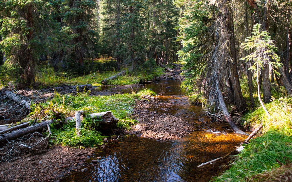 The trail closely followed Sopris Creek, which was at this downstream point an amalgam of several creeks further up the valley flowing from Brady, Sopris, and Esther lakes. Despite all the water near us, the pine-heavy air lacked humidity, a symptom of Colorado’s ongoing drought.