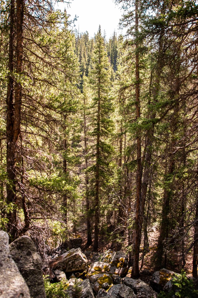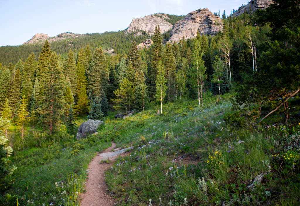 The Camp Rock Trailhead services two trails: the one we took to Beartrack Lakes, as well as another that follows a similar path but lies some distance to the north named the Beaver Meadows Trail. The two trails are connected several miles to the west by another trail named Cub Creek Trail. I had left Denver around four in the morning and rolled up to the trailhead just as the sun began to rise. Armed with some determination (and hindered by being a bit out of shape), I set off along the Beaver Meadows Trail. The excessively muted early morning light made for challenging photography conditions, but I still tried snapping some pictures all the same.