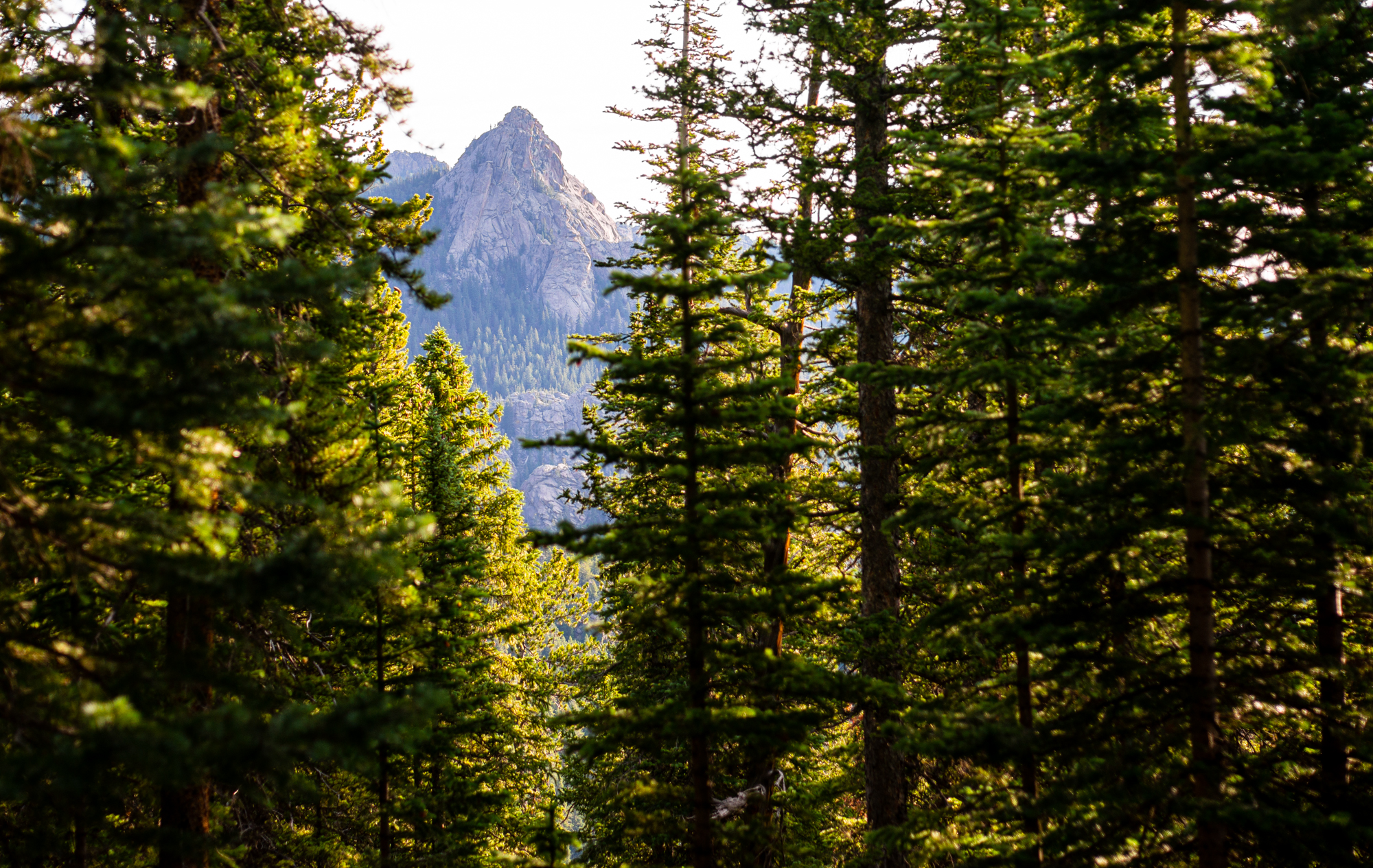 It was here, about two miles into the adventure, where the relentless uphill really began. A series of four long switchbacks led me high above the meadow, where through the trees I could now see a glorious pyramidal rock formation puncturing the sky. I continued on.