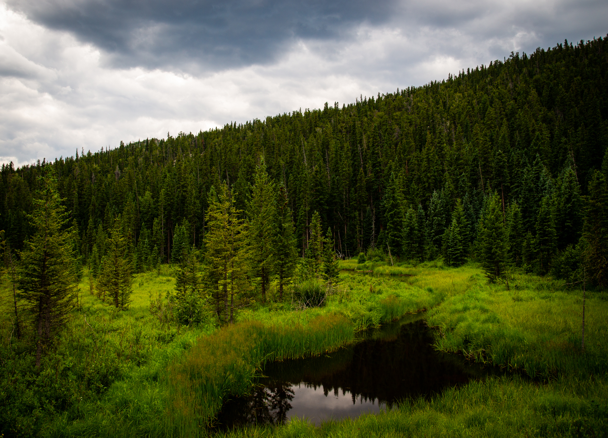 The Camp Rock Trailhead services two trails: the one we took to Beartrack Lakes, as well as another that follows a similar path but lies some distance to the north named the Beaver Meadows Trail. The two trails are connected several miles to the west by another trail named Cub Creek Trail. I had left Denver around four in the morning and rolled up to the trailhead just as the sun began to rise. Armed with some determination (and hindered by being a bit out of shape), I set off along the Beaver Meadows Trail. The excessively muted early morning light made for challenging photography conditions, but I still tried snapping some pictures all the same.