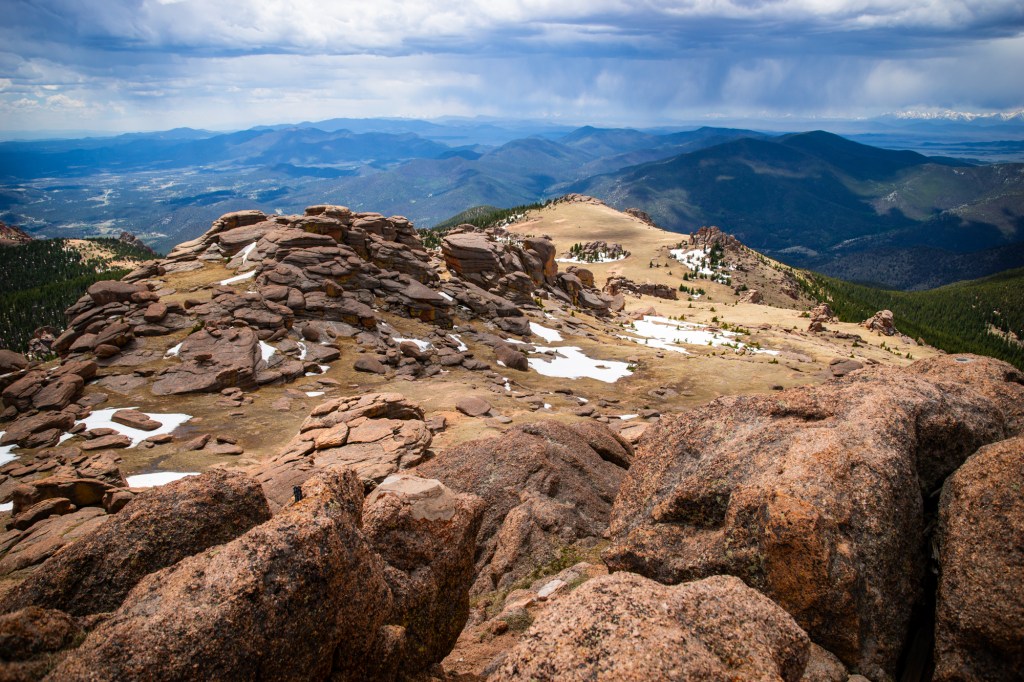 The scenery was impressive: I could pick out Mt. Blue Sky and Mt. Bierstadt twenty-five miles to the north, Pike’s Peak thirty miles to the southeast, Mt. Silverheels twenty-eight miles to the west, and even Mt. Princeton and nearby Collegiate Peaks some fifty-odd miles southwest!