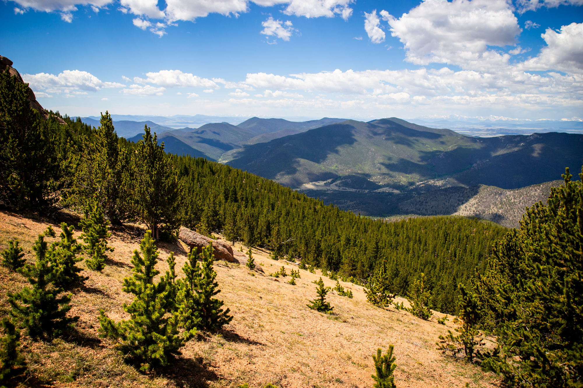 The scenery was impressive: I could pick out Mt. Blue Sky and Mt. Bierstadt twenty-five miles to the north, Pike’s Peak thirty miles to the southeast, Mt. Silverheels twenty-eight miles to the west, and even Mt. Princeton and nearby Collegiate Peaks some fifty-odd miles southwest!