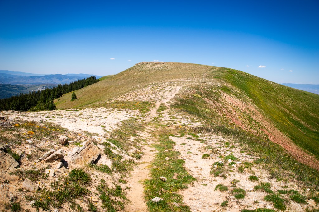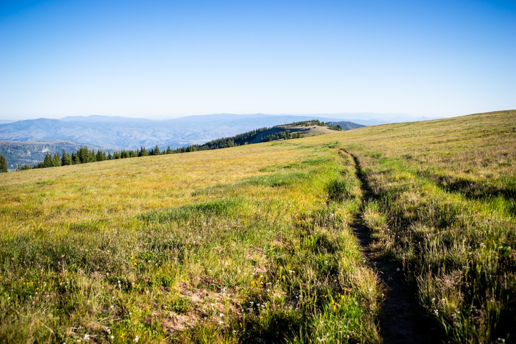 Just over three-and-a-half miles in the trail begins angling downward to a saddle of sorts. Travelers descend for almost a mile and ultimately lose about 250′ of elevation. It was here that I bailed on my previous sunset attempt of Meridian Peak. The scenery moving forward was new and refreshing. The remainder of the way to the summit of Meridian would be entirely uphill.