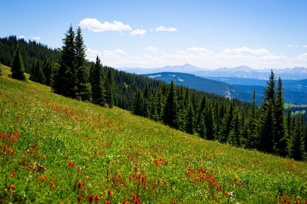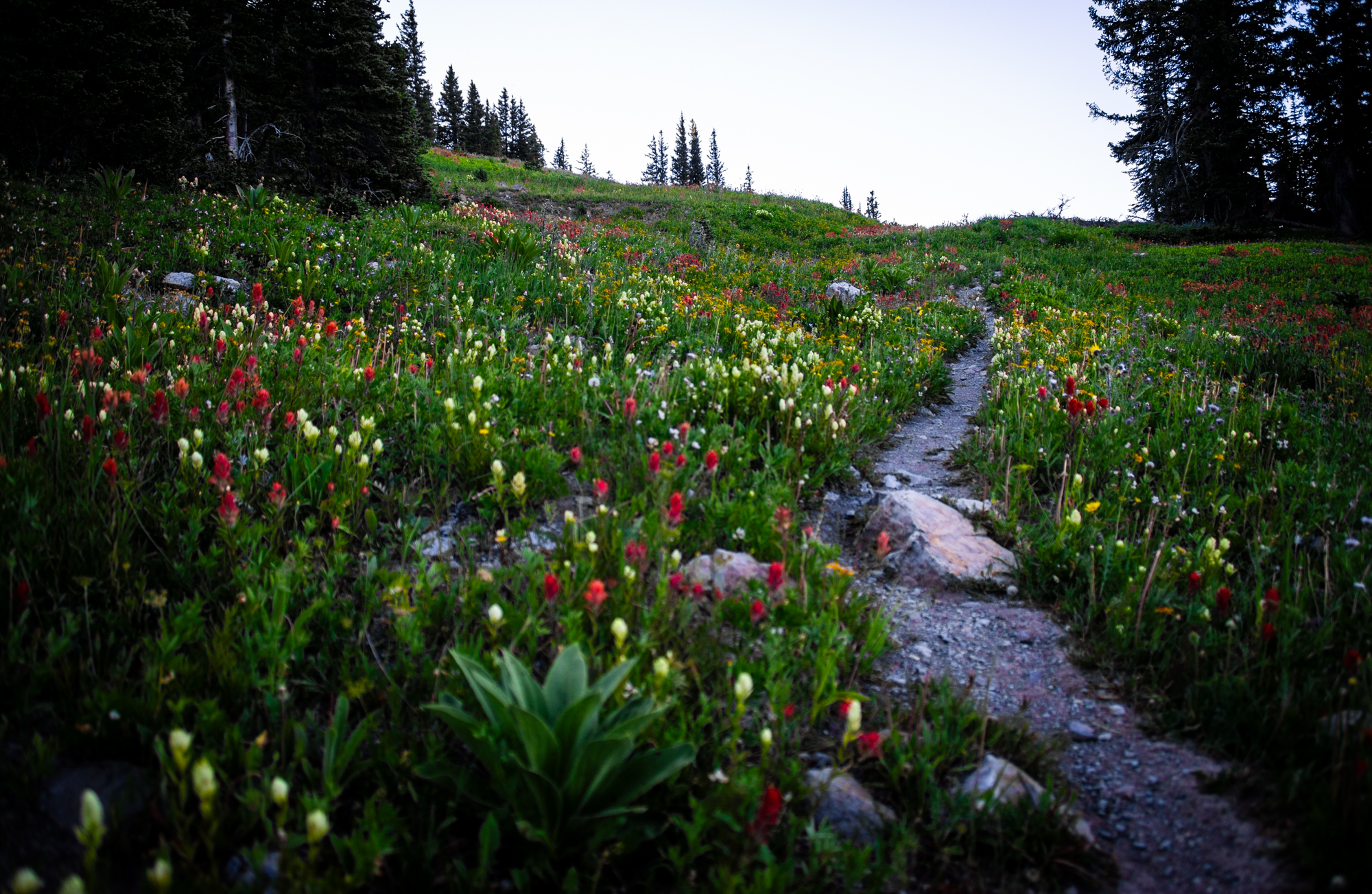 A glorious spectacle was unfolding beneath; a passel of vibrant wildflowers ornamented the verdant grasses around the trail.