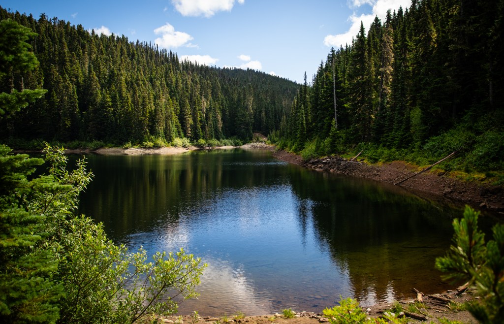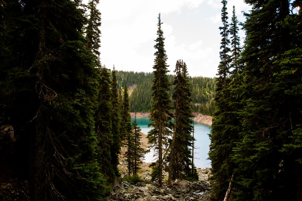 Just half a mile past Barrier Lake was Lesser Garibaldi Lake. What we could see of this lake through the trees looked beautiful, and could have been a main destination on any of our hikes back in Colorado. Given our main goal for the day was still ahead though, we carried on past.