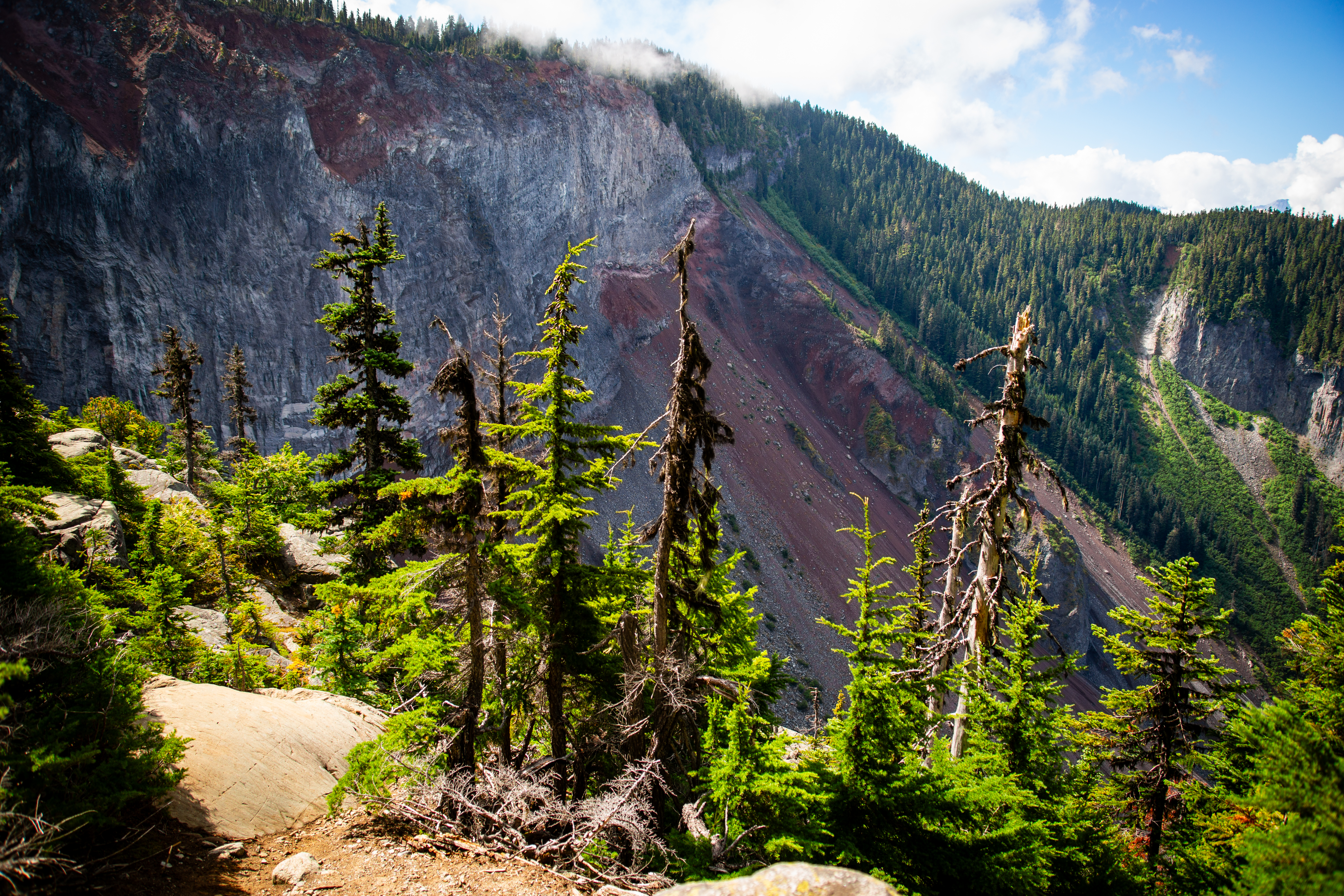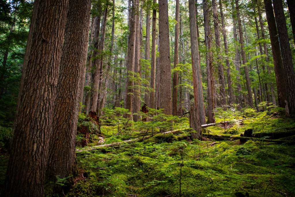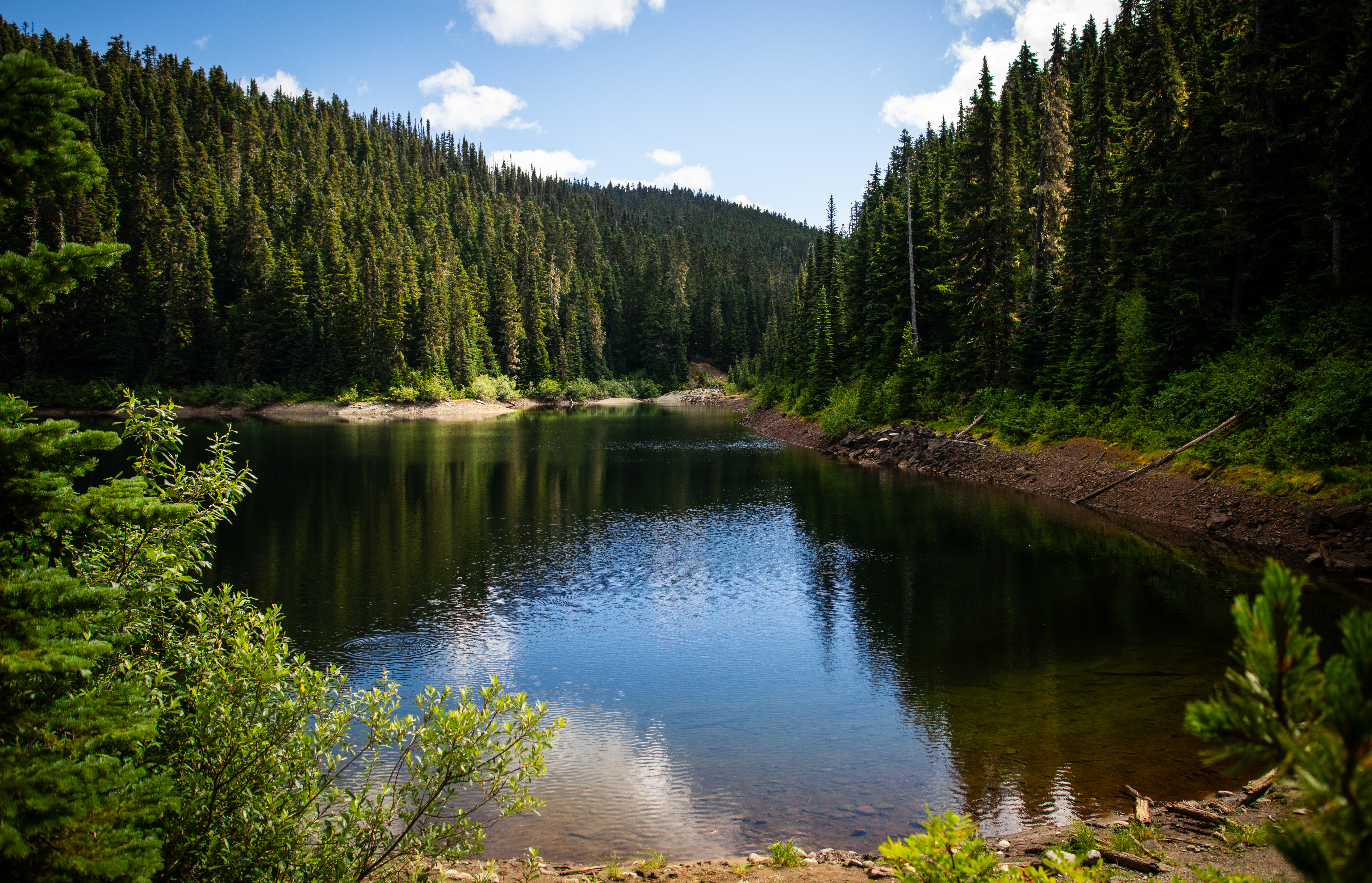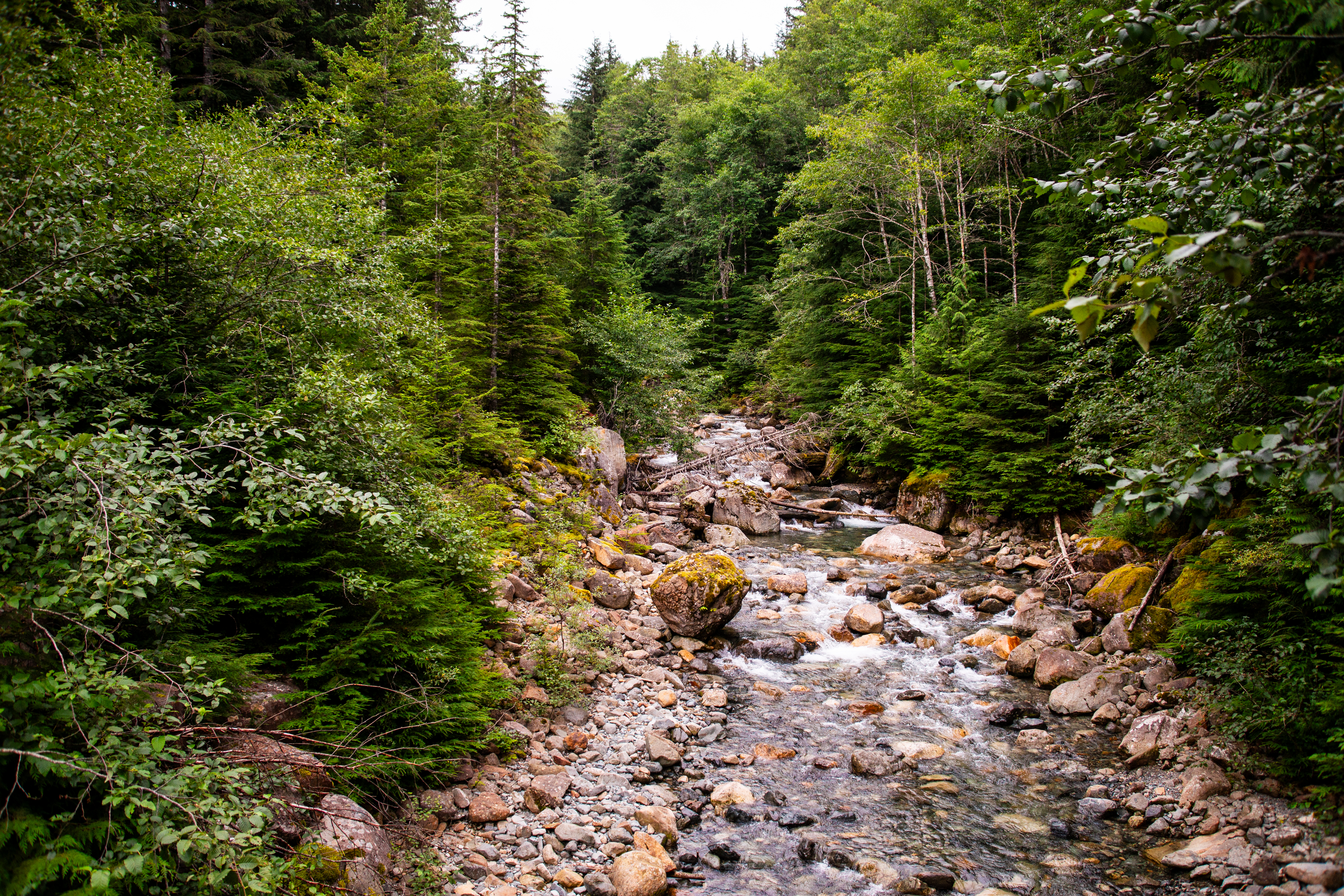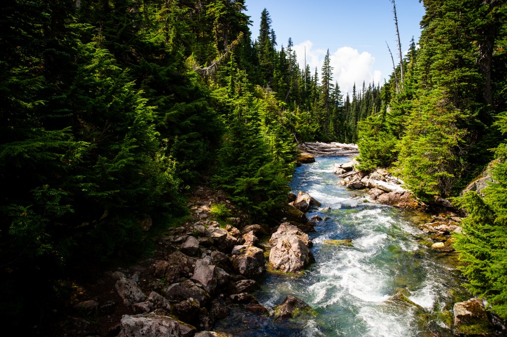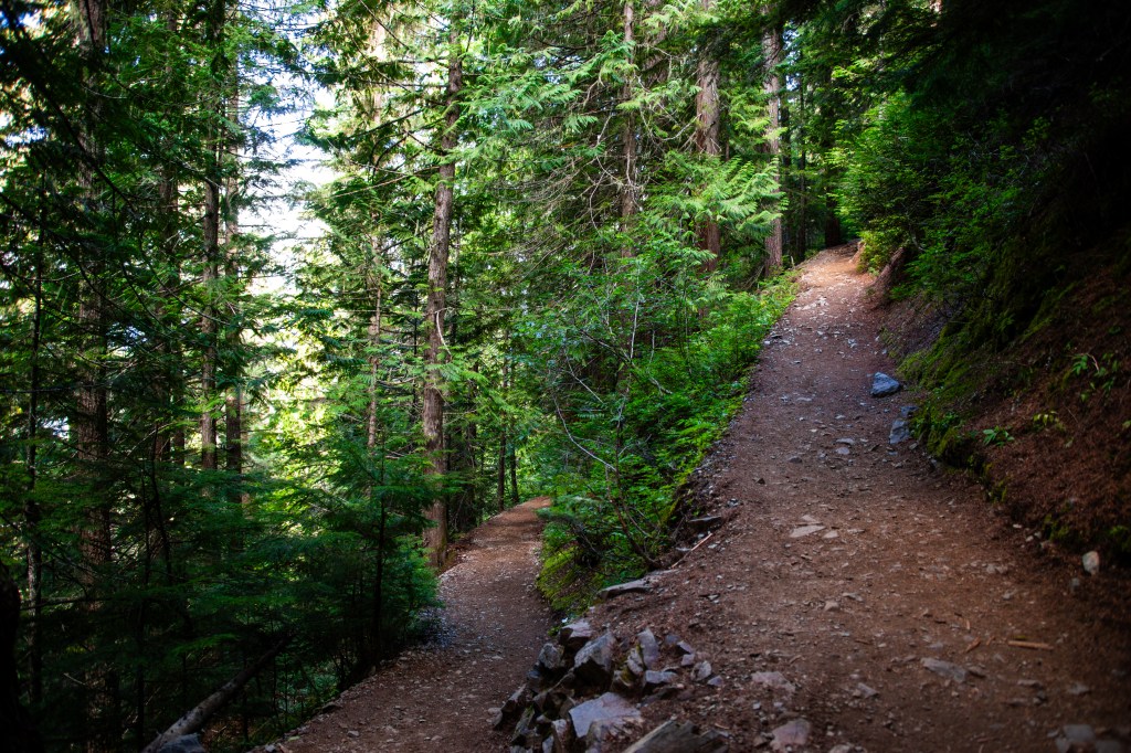 The path took us through evergreens sprouting from dense, green undergrowth. The dirt of the trail was interspersed with occasional creek crossings, but the entire route was clean and well-maintained.